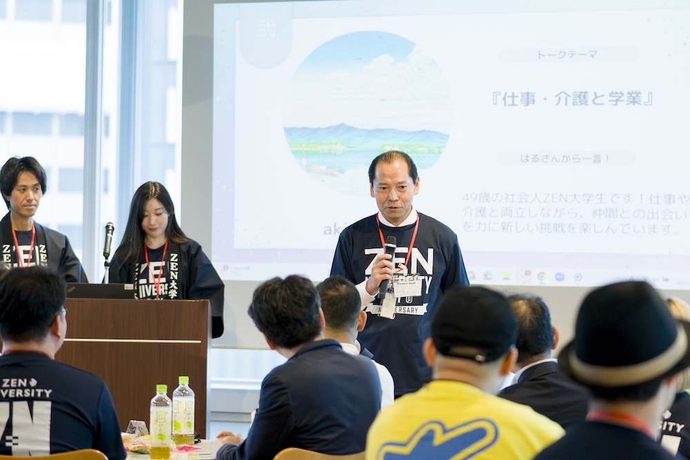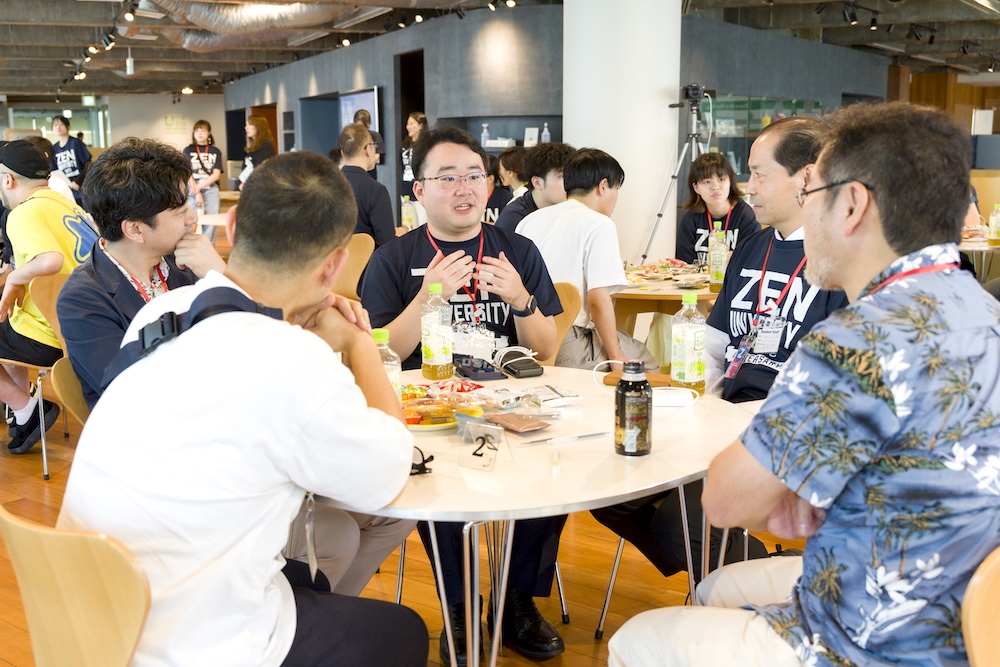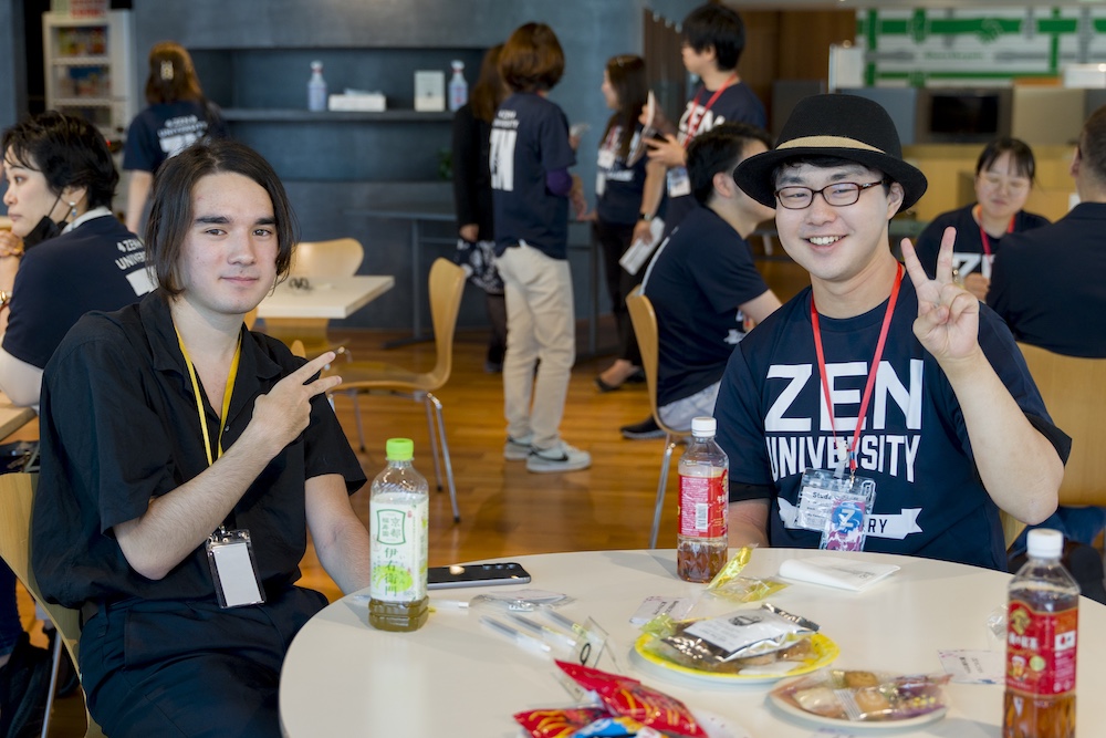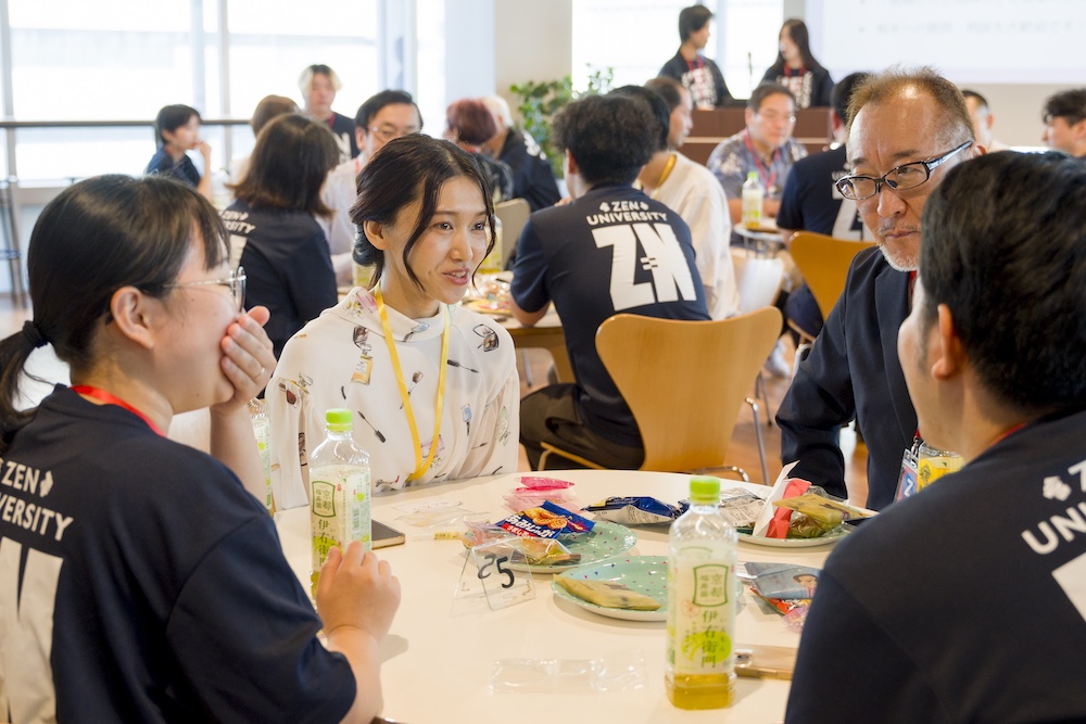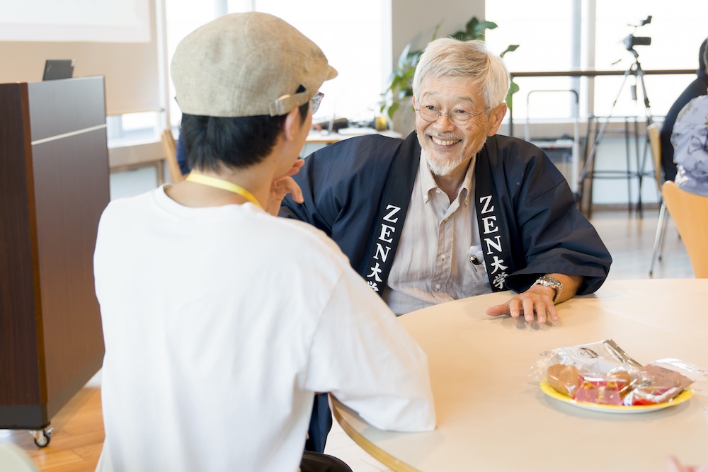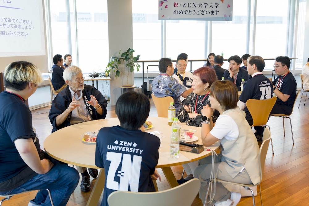 続いては、教員や在校生と膝を付き合わせてのテーマトーク。「ZEN大学で挑戦したいこと」をテーマに、新入生が自身の目標を熱く語りました。留学、研究、サークル活動など、それぞれの「これから」への想いを共有。教員からは、自身の学生時代の思い出や温かいアドバイスが寄せられ、さらに交流が深まりました。