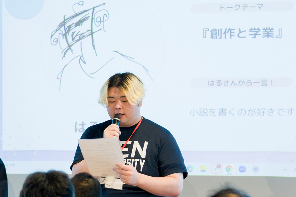 また、在校生によるミニ講演では、4名の在校生が登壇。入学の経緯やこの半年間の学びについて、「アニメを観る時間を授業に充てるようになった」「生成AIを日常的に活用するようになった」「仕事との両立が不安だったが、4時に起きて授業を視聴するようになった」「創作活動を応援してくれる仲間ができた」といった具体的な体験談を交えながら、新入生に力強いエールを送りました。先輩たちの「リアル」な声は、新入生にとって大きな励みとなったようです。