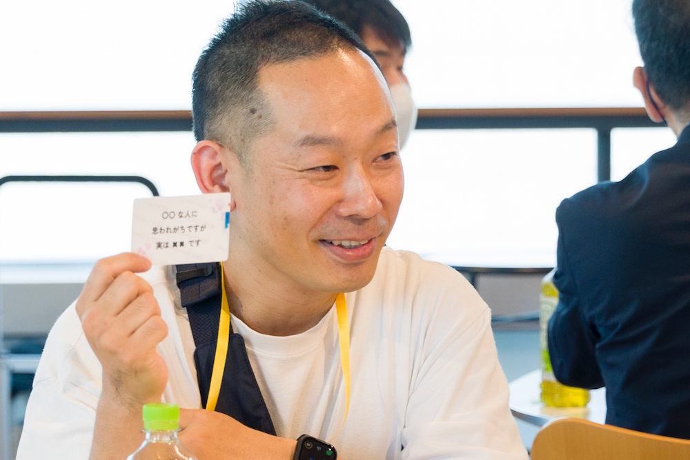 「フレーズカードde自己紹介トーク」では、参加者が引いたカードに書かれたフレーズ(構文)を使って自己紹介を行います。「もし、〇〇だったら××したいです」や「〇〇な人に思われがちですが、実は××です」といったユニークなフレーズに合わせ、場は一気に和やかに。初対面とは思えないほど、質問し合い、自然と笑顔と会話が弾む様子が見られました。