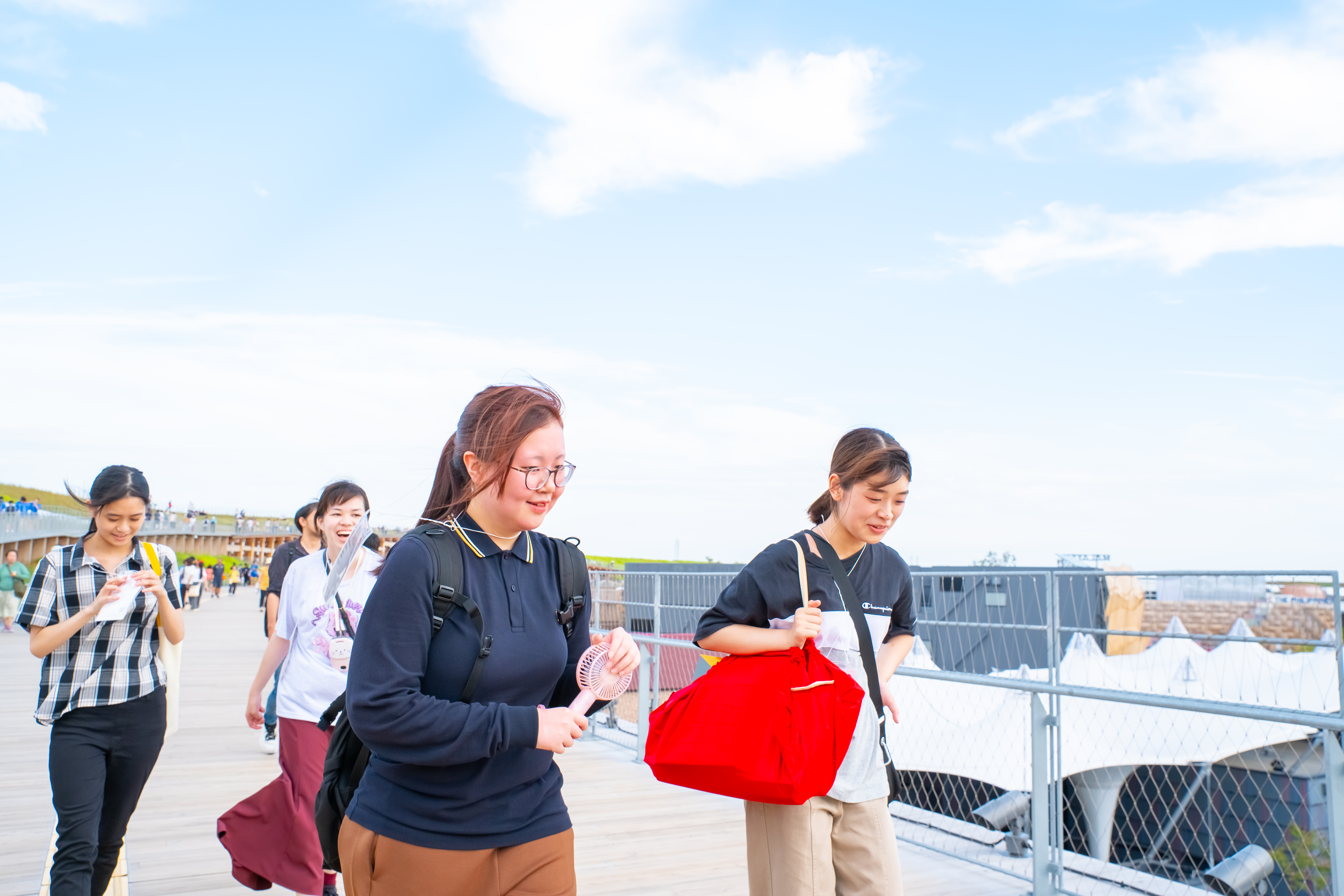 前日は大屋根リングを他の学生スタッフメンバーと歩いたり、祭りチームの高校生メンバーとの顔合わせ、最終打ち合わせをしました。