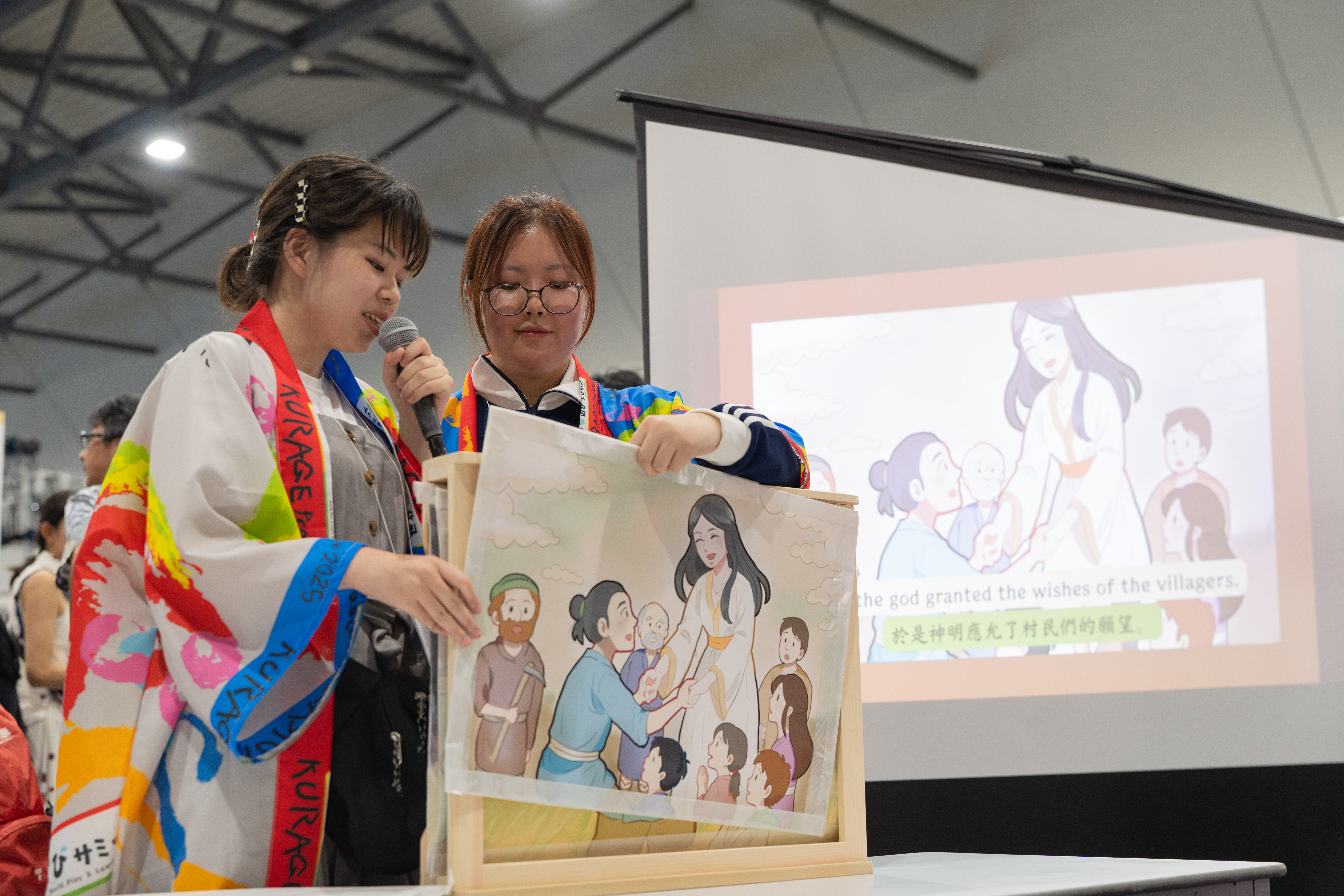 紙芝居は日本語は本物さながらの紙芝居、英語、中国語はデジタル紙芝居で進めました。